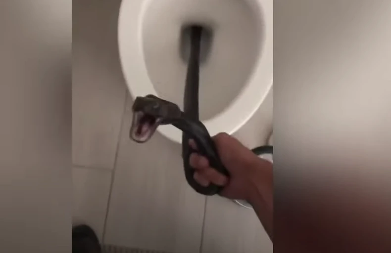 Mišel Lespron iz Tusona u wc-šolji je zatekla pravi horor. Dok je bila na odmoru u ogroman crni gmizavac nastanio je u njenoj klozetskoj šolji.