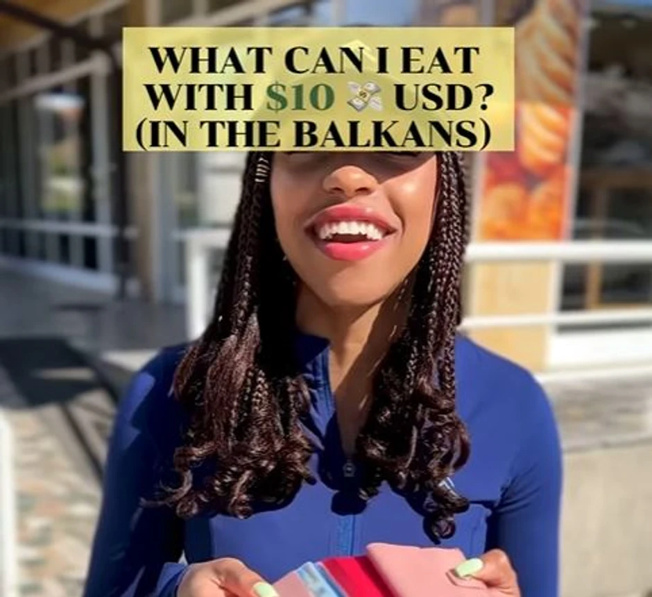 "Crna devojka na Balkanu nije radila tri meseca i danas mi je zadnji dan ovde. Imamo ovde 10 maraka i u sitnini još osam. Ukupno 18 maraka, što je ekvivalent 10 dolara. Hajde da vidimo šta može da se pojede na Balkanu za te pare.