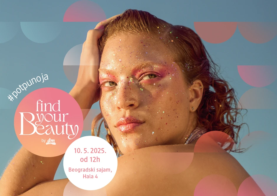 Šta za tebe znači pronaći sopstvenu lepotu? Odgovor te čeka na Find Your Beauty događaju, koji kompanija dm organizuje 10. maja 2025. u Hali 4 Beogradskog sajma!