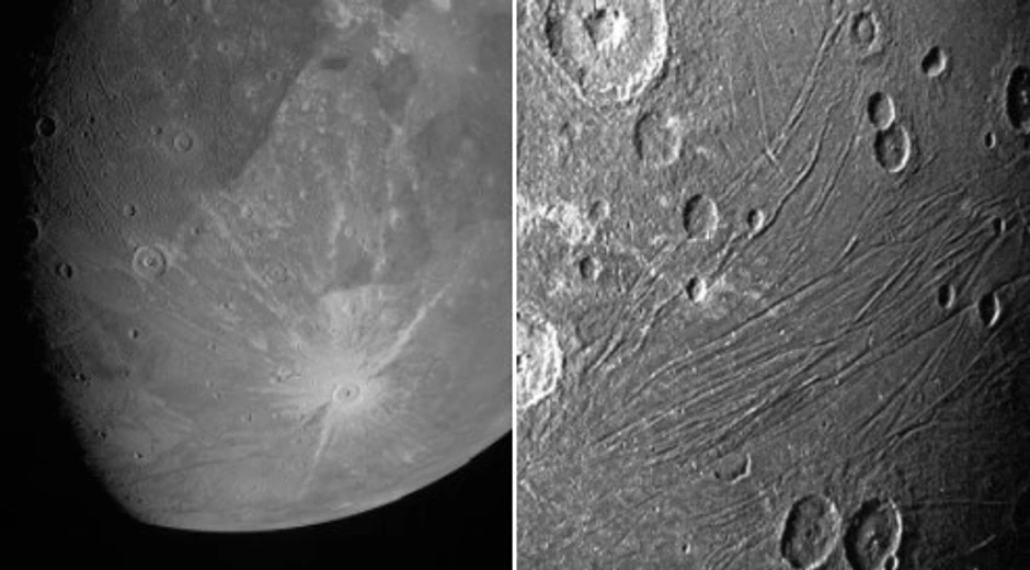 NASA je danas objavila prve dve fotografije sa letelice, označivši kratere Ganimeda i dugačke, uske crte koje su verovatno posledica tektonskih potresa.