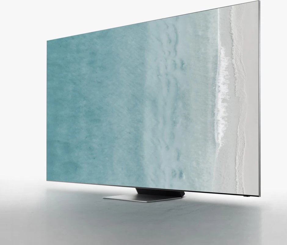 Infinity ekran, kao jedinstvena karakteristika u dizajnu Samsung televizora, omogućava maksimalno imerzivno iskustvo, uz minimalne ivice oko samog ekrana. Okvir Samsung Neo QLED 8K televizora stanjen je gotovo do nule, zahvaljujući naprednim tehnologijama i dizajnerskim tehnikama – izrađen od nerđajućeg čelika i debljine samo 0.8cm, ovaj okvir „briše granice” između ekrana i okoline, stvarajući iluziju da ekran lebdi u vazduhu.