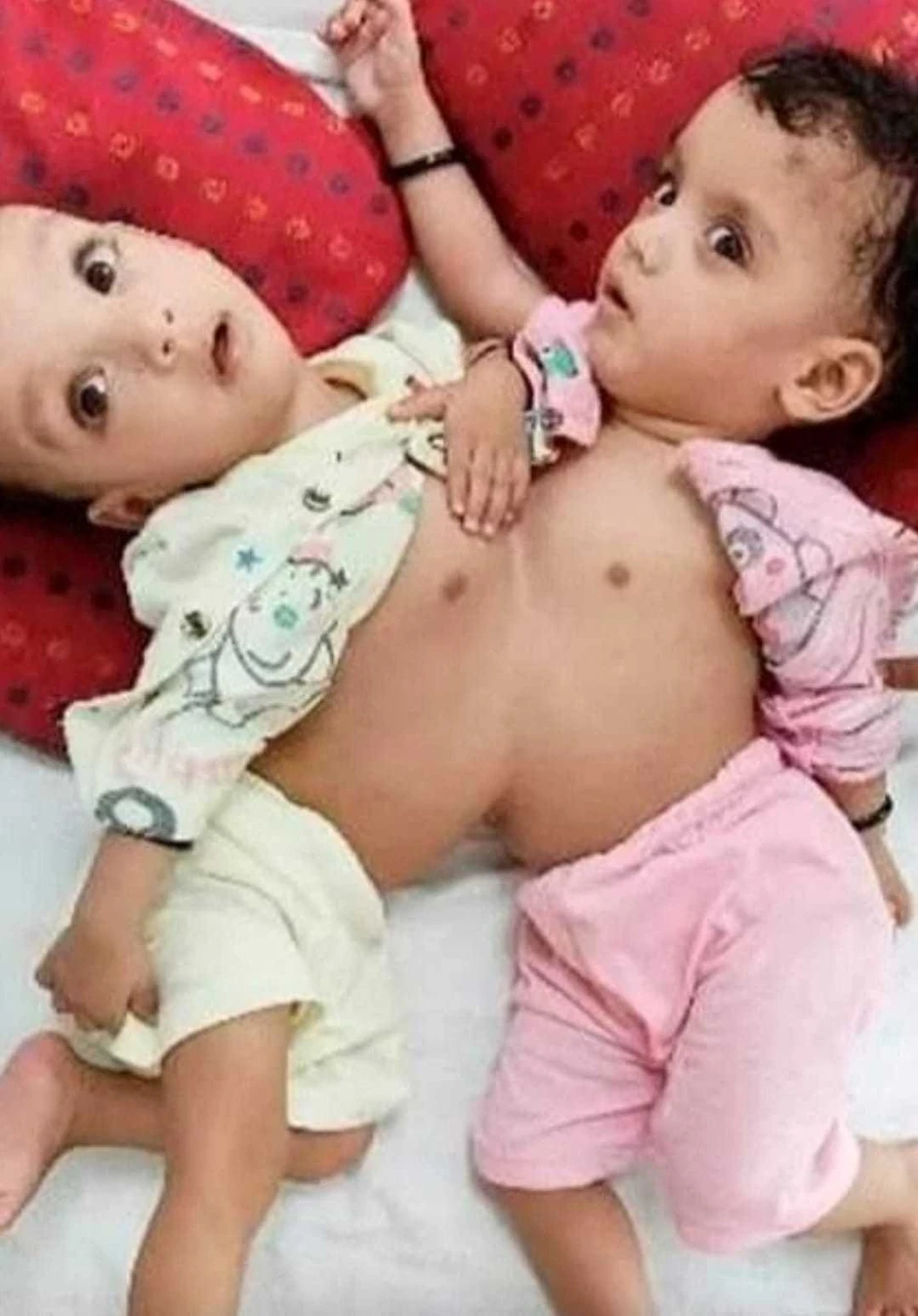 Sijamski blizanci iz Indonezije koji zbog svojih spojenih tela izgledaju nalik pauku i zajedno poseduju tri noge, četiri ruke i jedan penis predstavljaju redak fenomen koji se desi jednom u 2 miliona trudnoća.