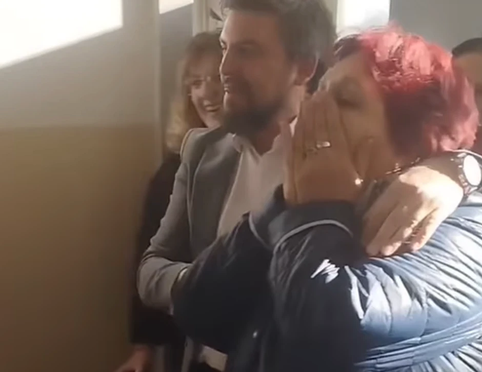 Kako tapšanje dugo nije prestajalo, učiteljica je, dodatno oduševljena, odlučila da uđe u masu i zagrli svu decu koja su tu bila zbog nje.