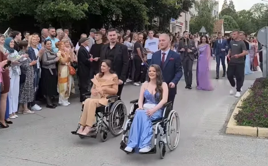 Video snimak i fotografije dvojice srednjoškolaca u Bugojnu koji su na maturu Opšte gimnazije i Medicinske škole došli sa svoje dve drugarice s invaliditetom, gurajući ih u kolicima, preplavile su internet kada su najpre pojavile na Fejsbuk stranici "Bug.Ba"