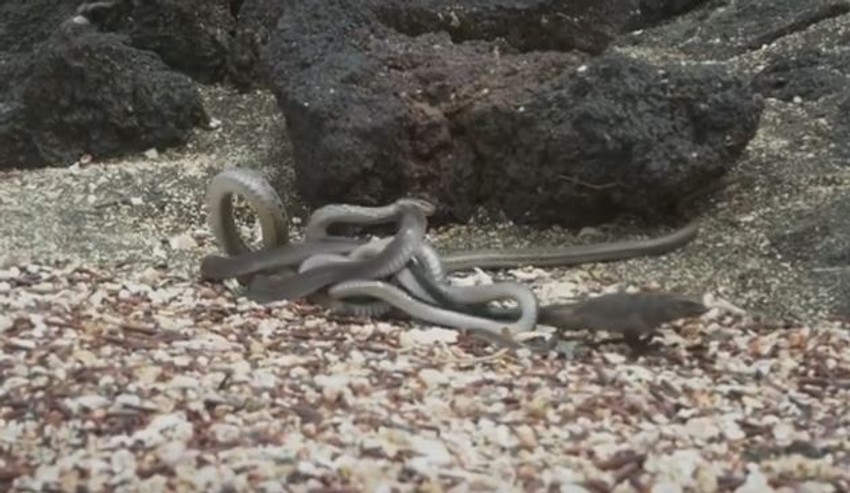 Želeli su da snime prehrambreni lanac na ostrvu, pa su na krjau bili iznenađeni. Kad su kasnije pogledali u pukotini u stenu tamo se nalazilo oko sedam, osam zmija.