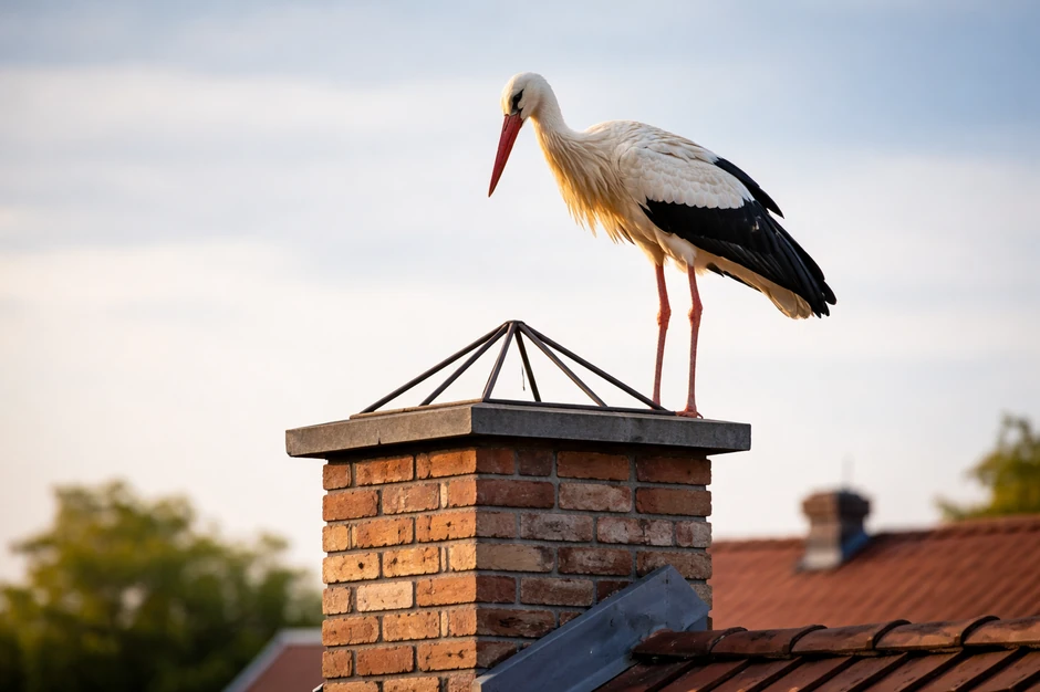 Fotografije prikazuju rodu koja stoji na vrhu dimnjaka na kojem je nekada bilo gnezdo. Umesto njega sada je postavljena metalna konstrukcija u obliku piramide, kakva se često koristi kako bi se sprečilo ponovno gnežđenje ptica na tom mestu.