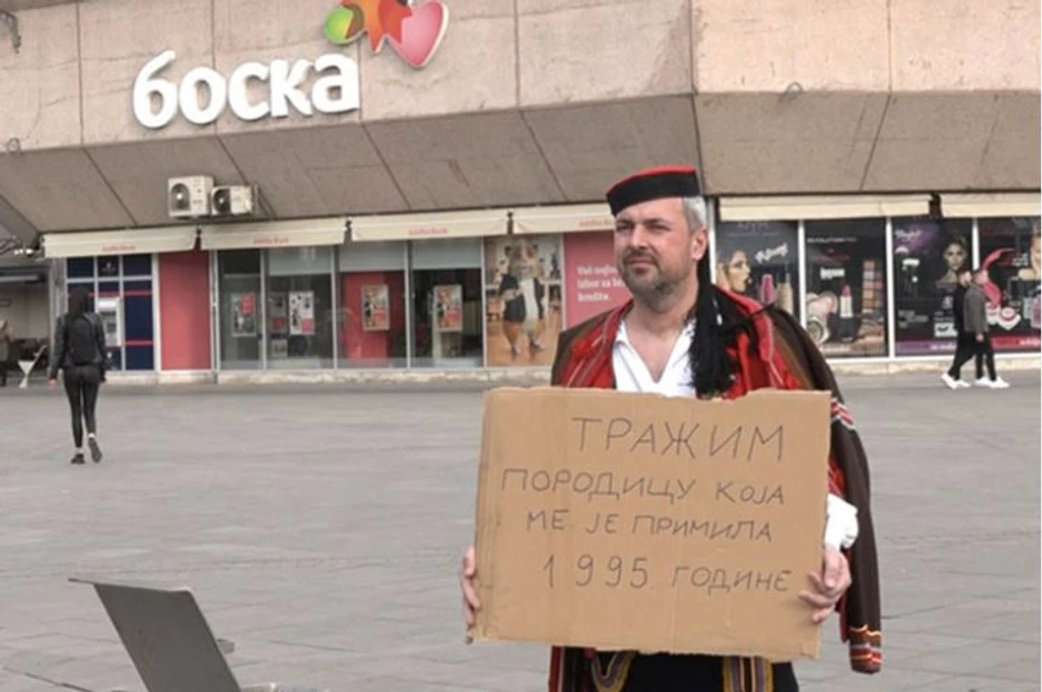 "Tražim porodicu koja me primila te 1995 godine", pisalo je na transparentu, dok smo prilazili deliji u narodnoj nošnji koji je plenio pažnju sugrađana. Kaže da mu je dugo trebalo da se odluči na ovaj korak, da je dugo, dugo razmišljao, ali da je želja da pronađe porodicu koja im je pomogla, kada je njemu i njegovoj proodici bilo najteže, ipak prevagnula.