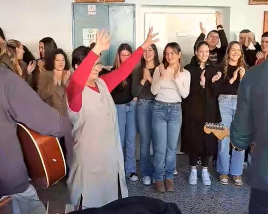 Učenici i profesori Gimnazije "Jovan Dučić" iz Trebinja priredili su poseban ispraćaj u penziju svojoj dragoj profesorki Mileni uz istoimenu pesmu Novih fosila.