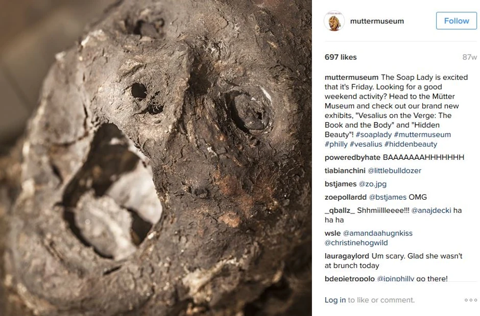 Tačan uzorak i vreme smrti verovatno nikad nećemo saznati. Mrtvo telo "Gospođe od sapuna" izloženo je u muzeju “Mutter” u Filadelfiji gde stotine posetilaca svakodnevno može da pogleda jednu od najjezivijih mumija na svetu.