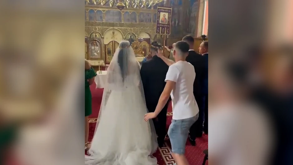 Dok je pravoslavni sveštenik venčavao par, jedan od gostiju, koji je stajao iza mladoženje u trenutku kada je svešteno lice stavljalo krune na glave mladenaca, rešio je da se bizarno našali sa mladoženjom.