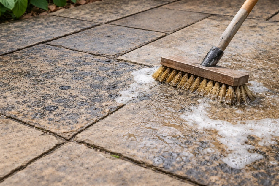 Postupak je jednostavan: u kantu tople vode dodaje se jedna mera deterdženta, rastvor se nanese na terasu ili prilaz i ostavi da deluje 20 do 30 minuta. Nakon toga površinu treba izribati čvrstom četkom i isprati običnim crevom.