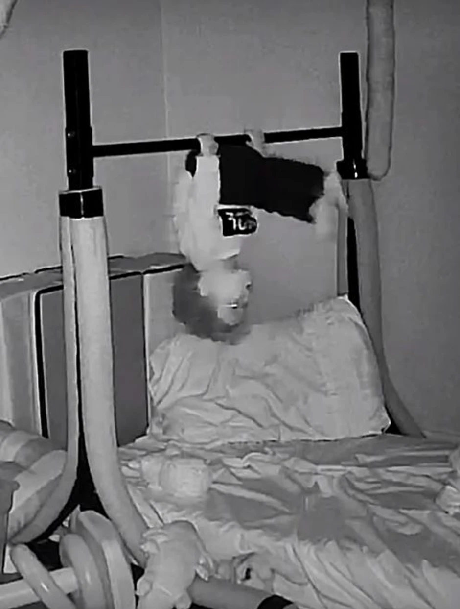 Na snimku se vidi mališan tokom noći kako zauzima razne položaje. U jednom trenutku izgleda kao da radi vežbe, pre nego što se nakači preko ograde svog kreveta.
