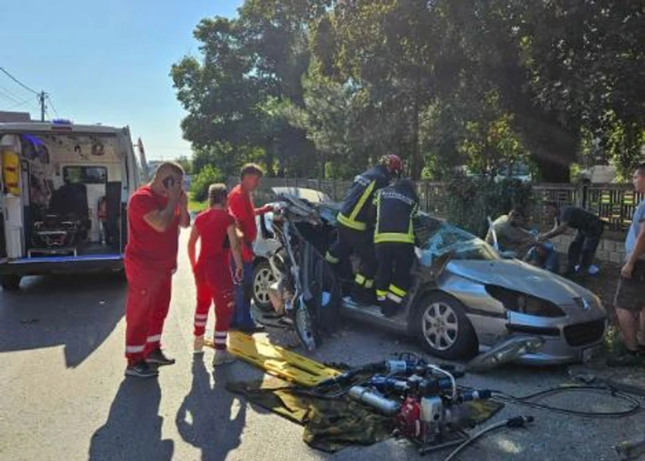 Pozvao sam odmah vatrogasce jer moraju pneumatskim makazama da otvore auto da bi hitna došla do povređenog lica. Za manje od dva minuta vatrogasci su bili na licu mesta. Za manje od minut su otvorili auto poput konzerve. Hitna je preuzela dalje.