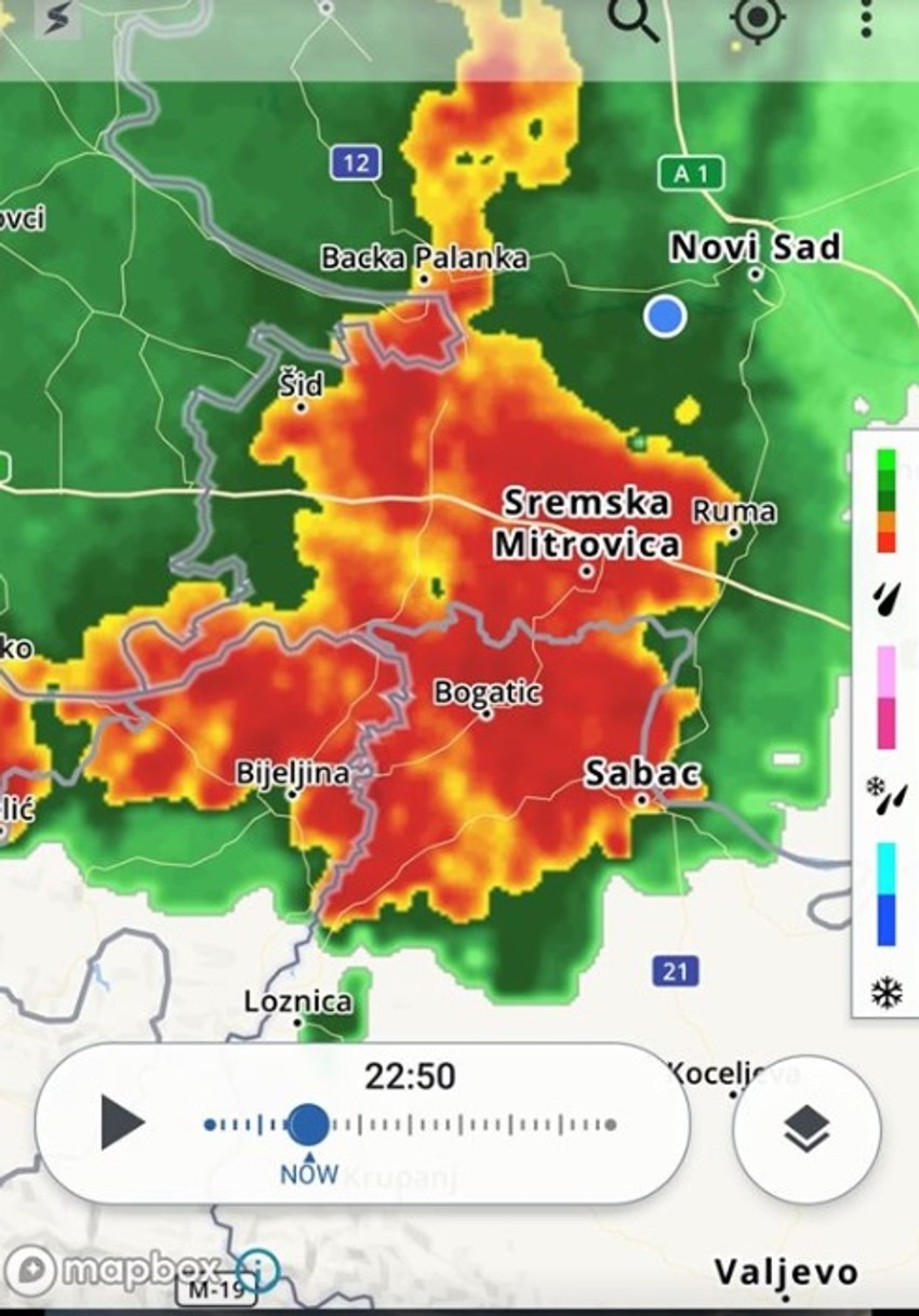 - U naredna dva sata oblačnost koja na severozapadu Bačke uslovljava jake pljuskove sa količinom kiše od oko 30 mm u kratkom vremenskom periodu i kratkotrajno jakim olujnim vetrom, premeštaće se dalje ka severu Banata. Istovremeno slične vremenske neprilike zahvatiće Srem, Mačvu i deo Podrinja - stoji u ovom hitnom upozorenju RHMZ.