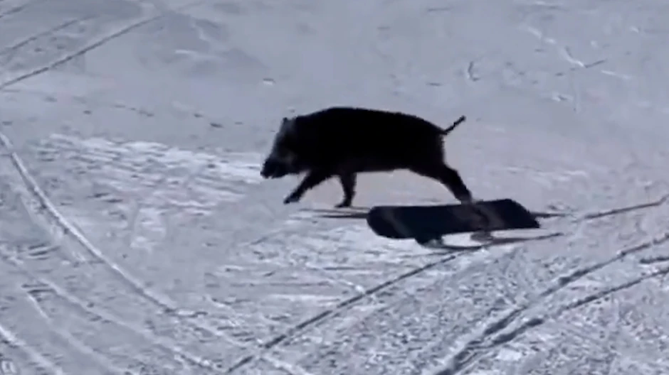 Nekoliko bordera moralo je na trenutak da prekine svoje uživanje na bordu, nakon što im se iznenada na stazi pojavio nepozvani gost. Naime, divlja svinja, nije baš blagonaklono gledala na njih, te je odlučila da im pokvari uživanje na snegu.