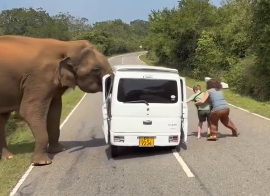 Slon na safariju u Šri Lanki napao minivan, otkinuo vrata n vozilu i izazvao paniku među putnicima.