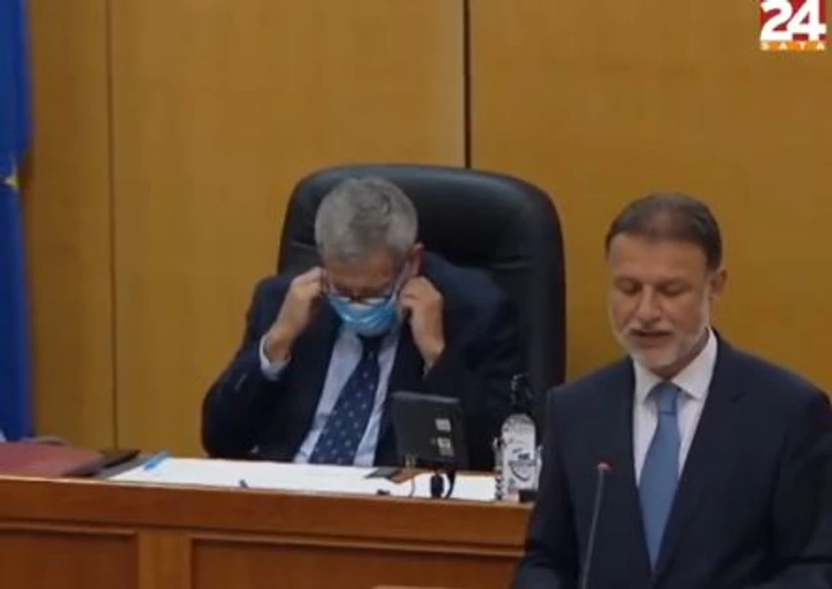 Poput svih ostalih, i on je nosio masku, dok se Gordan Jandroković obraćao prisutnima kao predsednik parlamenta, Bukarici je zazvonio telefon.