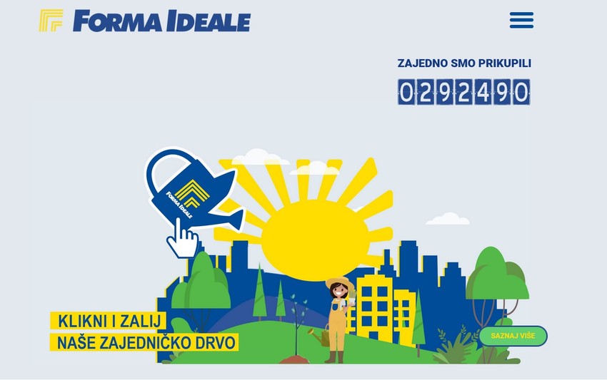 Za svaki klik na kanticu, Forma Ideale donirala je po 10 dinara za nabavku sadnica, a posetioci su u realnom vremenu mogli da prate brojač i vide koliko je novca prikupljeno.