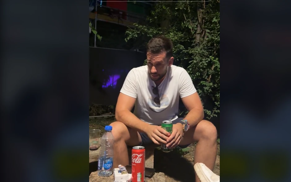 Na njegovom snimku se vidi kako đuska uz muziku, sarkastično se žali na glasnu muziku, kao i da ga leđa bole. Tražio je čil stejdž i žalio se na kilometražu do dens arene i na kraju rekao: "Nikad nisam video toliko Srba u životu"
