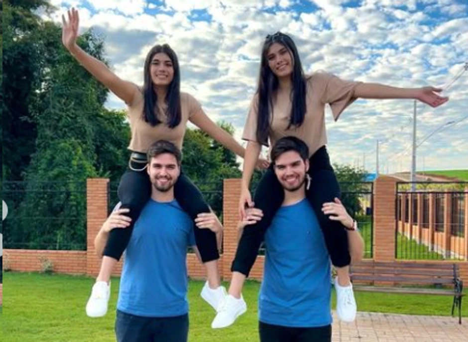 Brazilske infulenserke Larisa i Leticija Lazarin (19) su jednojajčane blizanke koje su ljubav pronašle kod dva takođe identična blizanca, Filipom i Orsatom. Oba para postala su jako popularna zbog čestog deljena detalja svojih "identičnih veza".