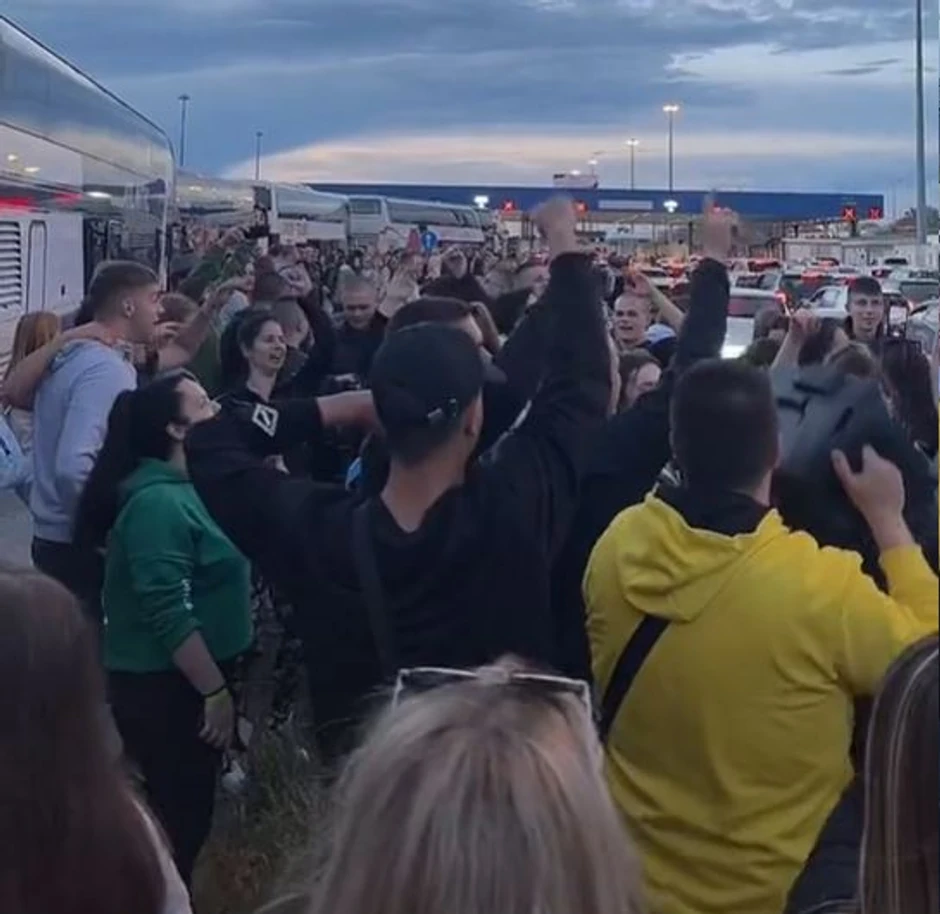 Mladi iz Srbije izašli su iz autobusa, da bi nakon toga uzeli zvučnike i započeli žurku na otvorenom, verovatno željni odmora i provoda nakon dve godine, te je započelo đuskanje i pevanje, kao da su na koncertu.