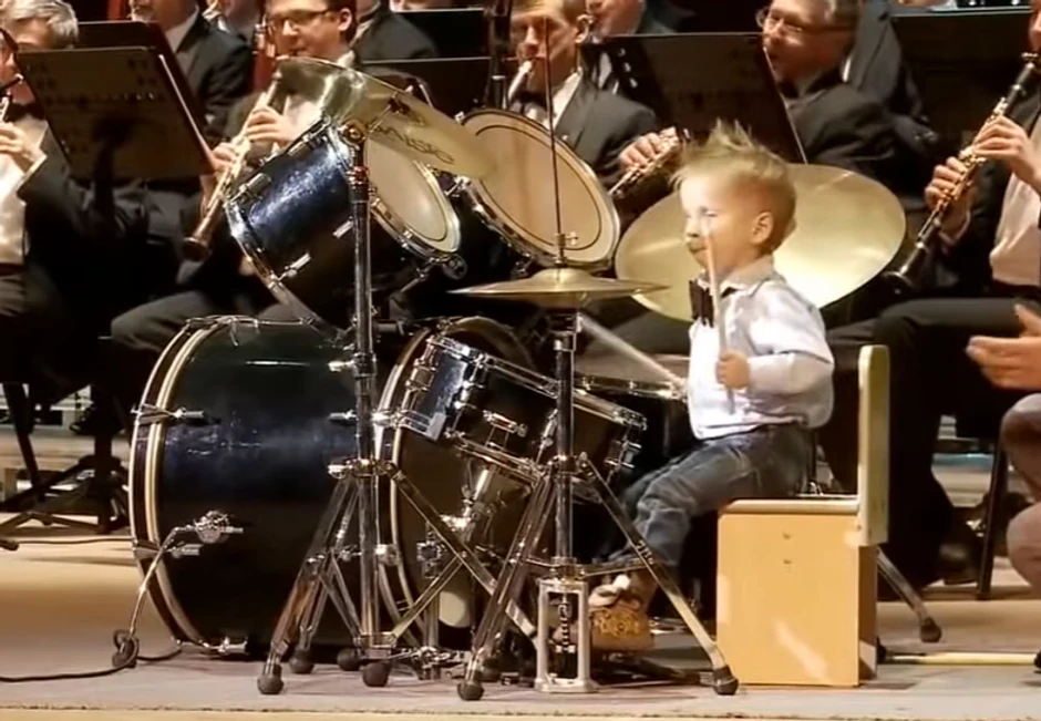Obučen u elegantnu odeću sa leptir mašnom, izgledao ponosno dok je sedeo za bubnjevima. Štaviše, tokom nastupa svirao je bez notnog zapisa, s lakoćom prateći tempo i promene, a publika ga je nagradila gromoglasnim aplauzom.