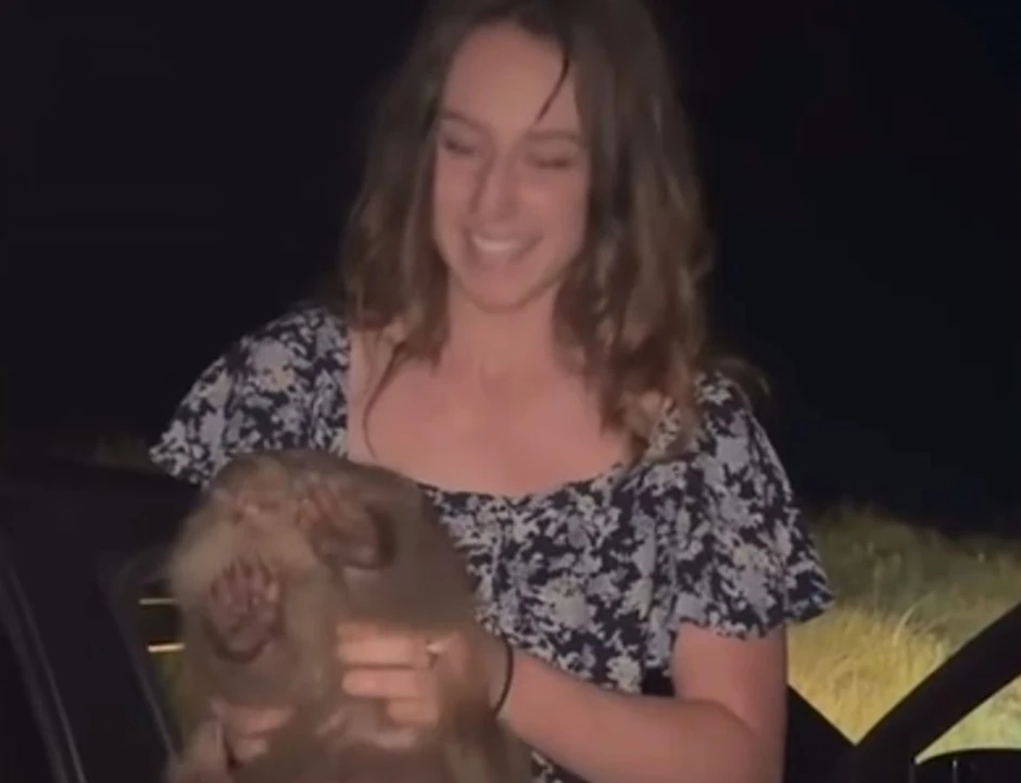 Na snimku, koji je ubrzo postao viralan, vidi se kako ona noću presreće bebu vombata sa strane puta dok je muškarac snima i smeje se. U trenutku dok beba vombat visi u njenim rukama, majka vombat trči za njom. Muškarac uzbuđeno komentariše: "Pogledaj majku, ona je iza nje!"