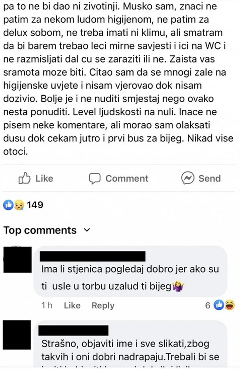 - Kada smo to rekli gazdi, on je rekao da to nije njegov problem. Užas -napisala je ona.