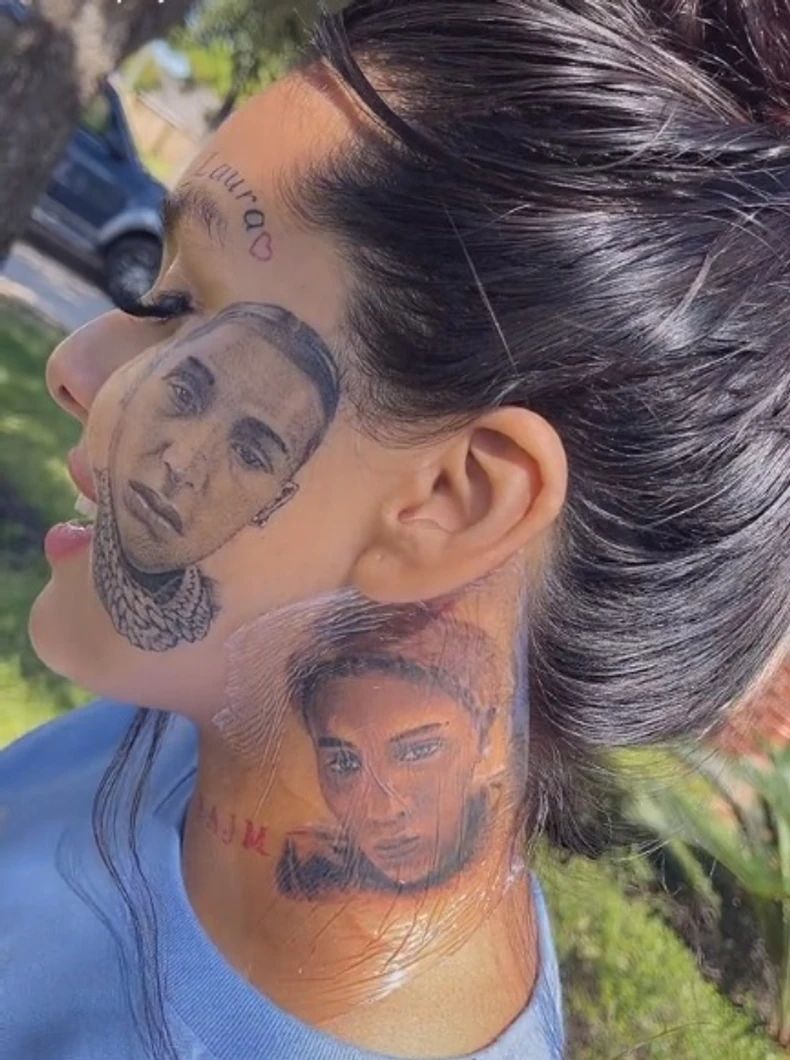 Većina ljudi navikla je da vidi momke i devojke sa istetoviranim imenima partnera ili prijatelja i članova porodice ali retko ko je imao priliku da vidi devojku sa tetovažom na licu i vratu na kojoj je lik njenog bivšeg momka koji ju je pritom prevario.
