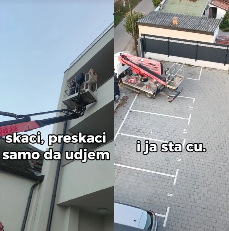 "Penji se, ulazi, ne pitaj ništa, drž' se kako znaš i umeš, skači, preskači, samo da uđem na terasu i otvorim vrata, inače ode glava i meni i mački. Jedva uskočih, a ova moja... Toliko je skakala na vrata dok nismo bili tu, da je uspela da spusti rezu i zaključa stan sa unutrašnje strane. Genije!", ispričala je Ivana.
