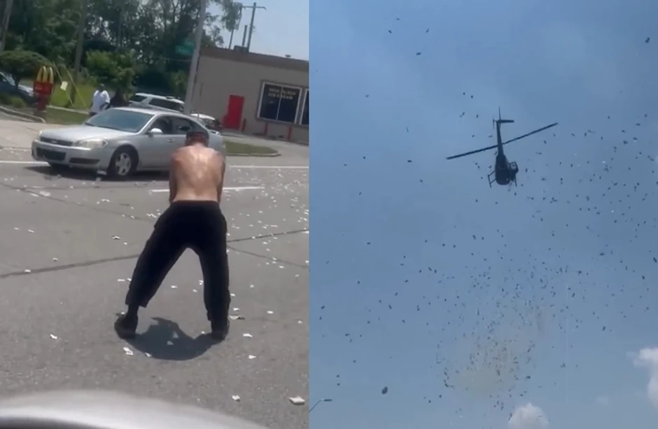 Krajem prošle nedelje, tačnije u petak 27. juna oko 13:00 časova, helikopter je nadleteo istočni deo Detroita, na raskrsnici avenija Gratio i Koner, i iz njega su ispušteni paketi sa novčanicama u vrednosti od oko 5.000 dolara, zajedno sa laticama ruža.