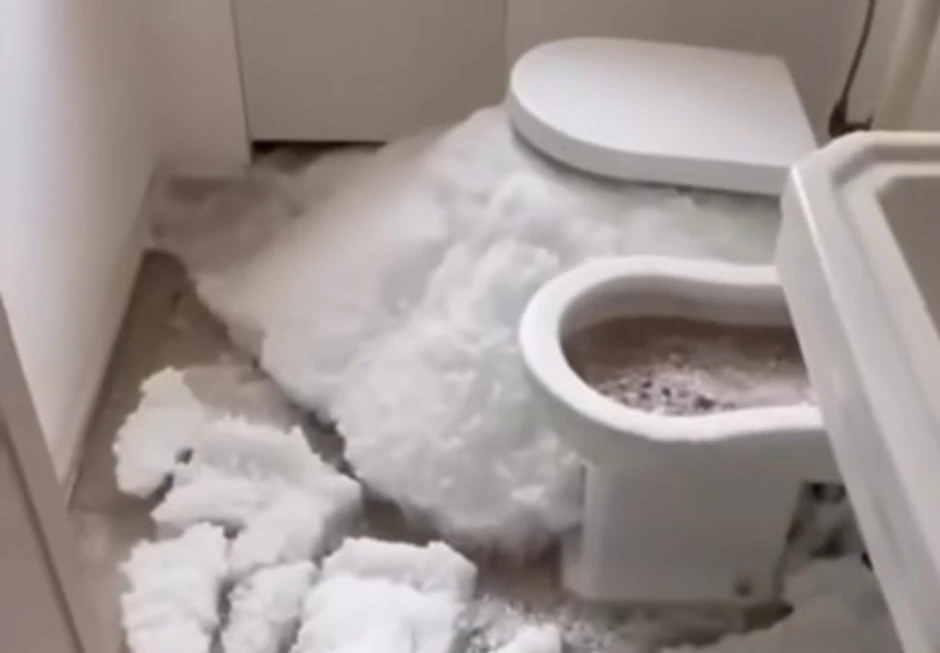 Intenzivna padavina blokirala je kanalizacioni sistem, izazvavši povratni pritisak i proboj leda kroz kućne cevi. Snimak neobičnog incidenta brzo je postao viralan na društvenim mrežama.