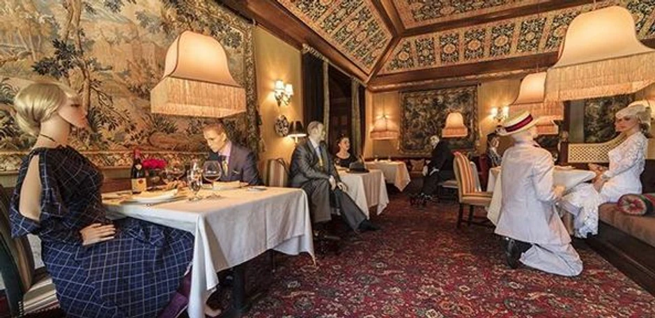 Šef Patrik Okonel odlučio je da ih popuni - lutkama. Fotografije na društvenim mrežama iz restorana prikazuju lutke u odelima i haljinama iz 1940-ih, odnosno u odelima s kravatama i šeširima.