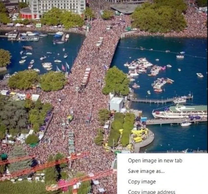 "Danas je preko 20 mojih FB prijatelja podelilo ovu fotografiju, uz komenar kako je ovo jučerašnji snimak iz Berlina, na kojem se vidi nekoliko stotina hiljada ljudi koji su izašli na protest protiv mera u borbi protiv korone i protiv Angele Merkel. Dobra stvar kod interneta je što za svaku fotografiju možete da proverite kad i gde je nastala. Sravite kursor na fotografiju, desni klik, pa onda kliknete na opciju "Search Google for image" i vidite od kada je fotografija, ova konkretno je sa Street Parade 2019. u Cirihu.", napisao je Marko u opisu fotografije.