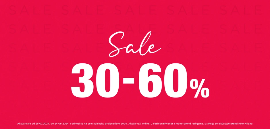 U svim prodavnicama Fashion Company, kao i u onlajn šopu fashionanfriends.com, od četvrtka 25. jula 2024. očekuje vas od 30% do 60% popusta na baš sve modele iz kolekcije proleće/leto 2024.