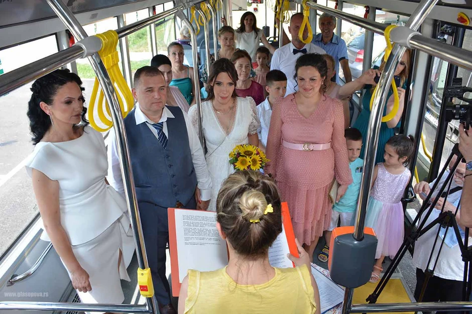 Naime, posle venčanja u crkvi, mladenci su se u pratnji svatova uputili u autobus koji je bio parkiran ispred crkve gde ih je čekala matičarka da obave i građansko venčanje, prenosi ePančevo.