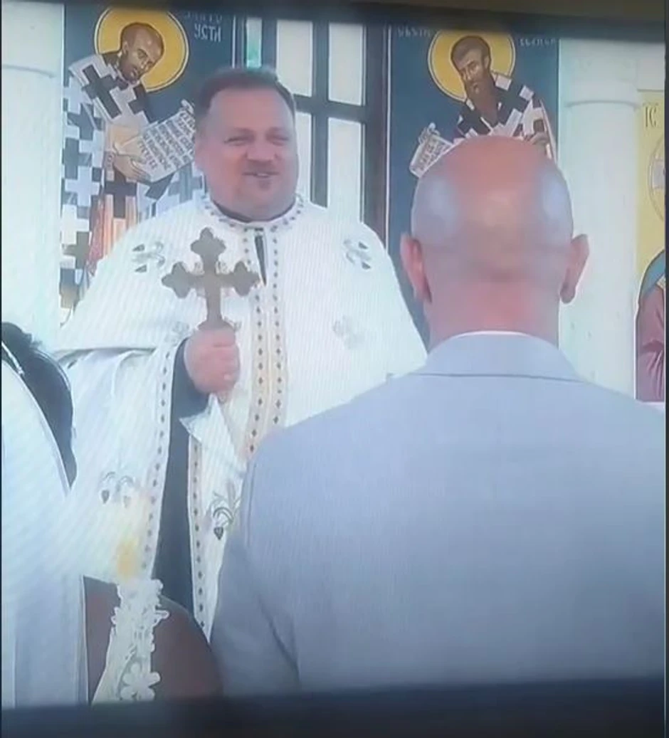 Naime, u trenutku kada je mladencima davao svečane sveće, taman pred službu, on je držeći u rukama krst, pogledao u pravcu mladoženje, dobacivši mu "grešniče" kroz osmeh na licu.