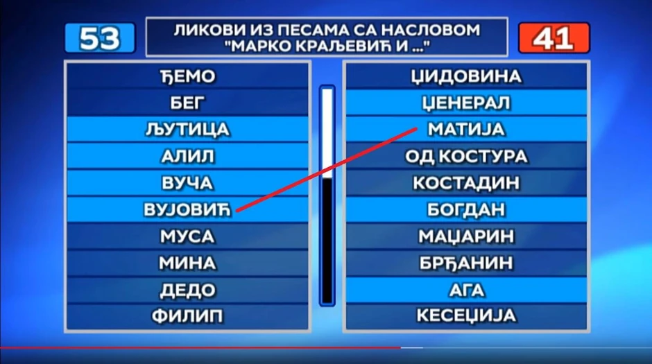 Ni takmičari, ni gledoci kraj malih ekrana, nisu videli ništa sporno kada se u jednoj od igra pojavilo ime Marka Kraljevića i Vujović Matije tokom navođenja svih epskih pesama napisanih njemu u čast. Emisija se završila, a ona, ubrzo nakon toga, na društvenim mrežama se oglasio Matija koji je sa svega par rečenica, podigao pravu buru na društvenim mrežama pre četiri godine. Zahvaljujući društvenim mrežama, ova priča se ponovo aktuelizovala, zbog čega već par dana, korisnici ponovo dele skrinšot objave iz kviza, kao i sa Vikipedije.