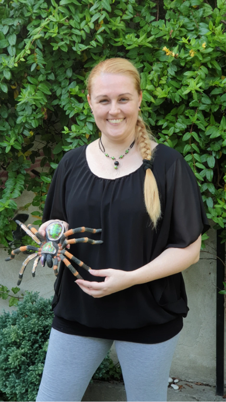 Onda joj je sinula ideja, ako ne može da ide u potragu za paukovima, niti da podučava o njima, može da ih nosi oko vrata.
