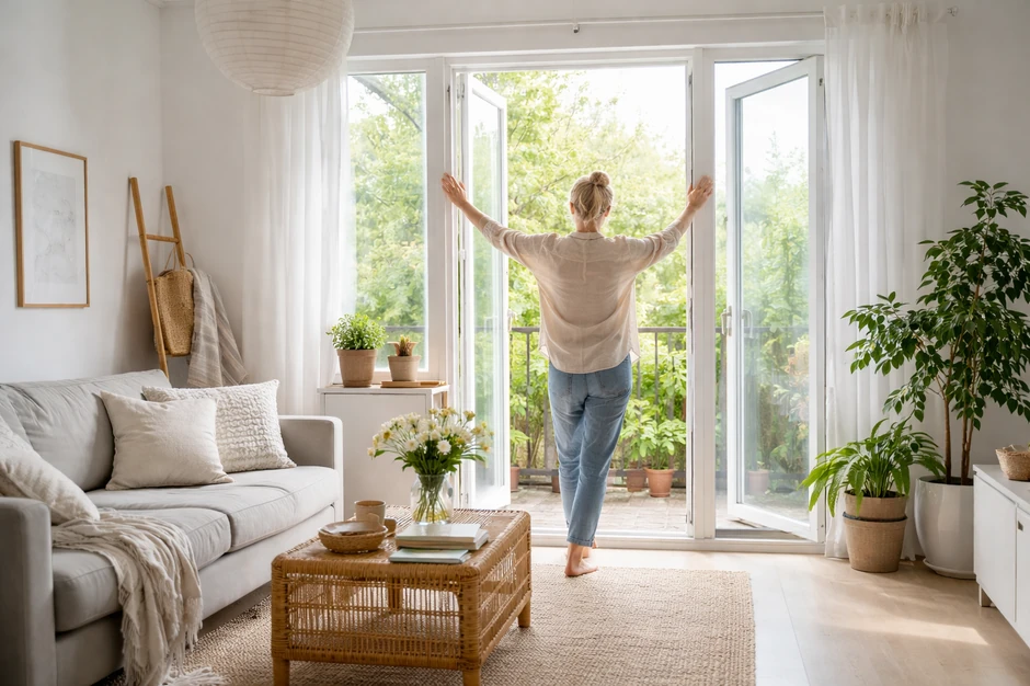 Nemci su poznati po navici zvanoj Stoßlüften – širom otvoreni prozori na nekoliko minuta ujutru i uveče, umesto držanja prozora blago otvorenim (na kip) ceo dan. Ovo stvara promaju koja momentalno menja ustajao vazduh i smanjuje vlagu, što sprečava nastanak buđi i onog "teškog" mirisa u kući koji često pokušavamo da maskiramo osveživačima.