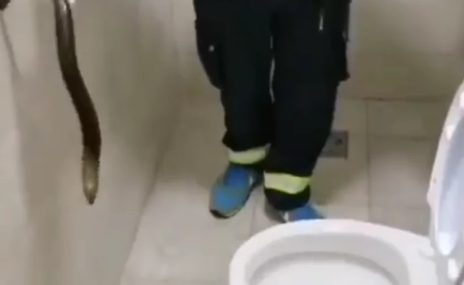 Na video snimku vatrogasac se poprilično namučio kako bi izvukao ovog guštera koji se zaglavio u WC šolji. Gušter veličine pola metra je živ, ali s oštećenim repom, piše Noob.ba.