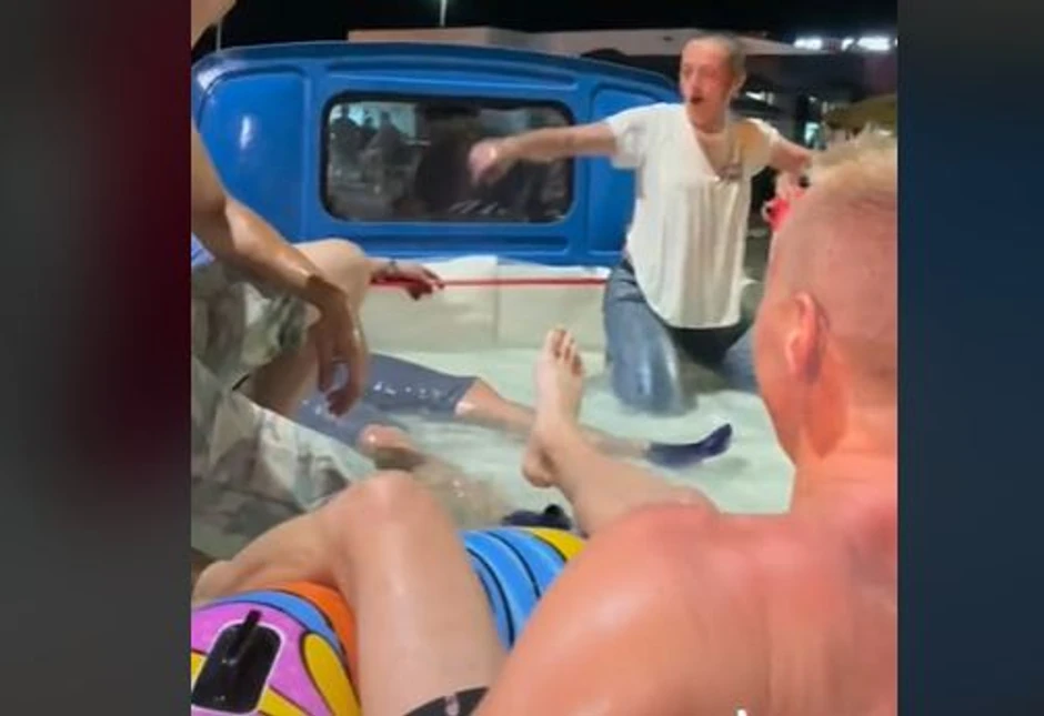 Kulminacija je usledila kada je jedan od njihovih prijatelja rešio da ih dodatno rashladi, te je uzeo crevo i počeo da ih poliva vodom.