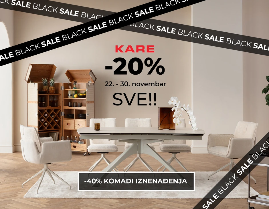 Od 22. do 30. novembra održava se KARE Black Week kada će u salonu i online shop-u svi artikli iz ponude biti sniženi 20%. Celokupnu ponudu pogledajte na www.kare.rs.