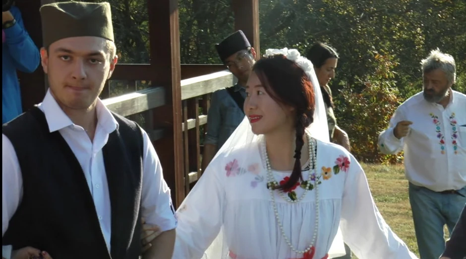 Mlada i mladoženja su obučeni u srpsku narodnu nošnju, gađa se jabuka i kupuje mlada. Jedino što se malo razlikuje jeste trpeza, pošto gosti iz Kine u odnosu na nas imaju drugačije principe ishrane i to se poštuje.