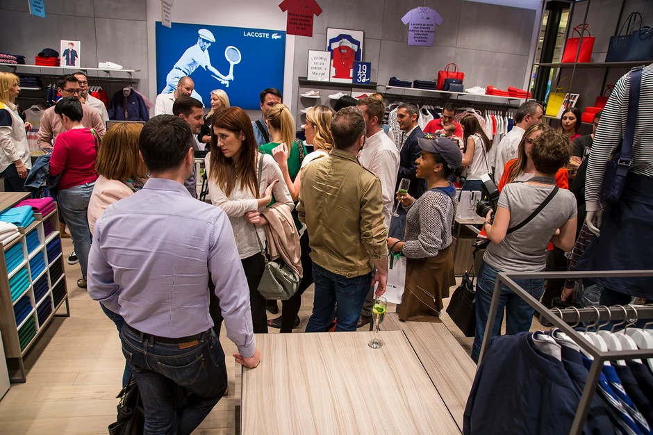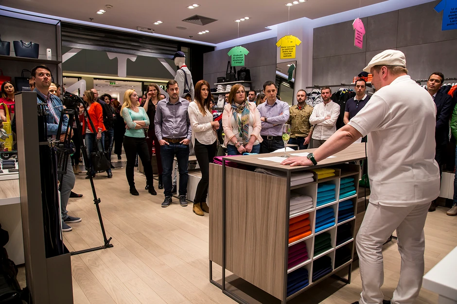 O svemu tome su Momčilo Otašević, Aleksandar Radojičić, Marina Kotevski, Snežana Dakić, Danijela Buzurović, Nenad Radujević, Ivon Jafali, i mnogi drugi mogli da čuju u obraćanju poznatog glumca Dragana Vujića Vujketa, koji je iz lika Renea Lakosta pričao o istoriji ovog brenda u novorenoviranoj prodavinici u Ušću.