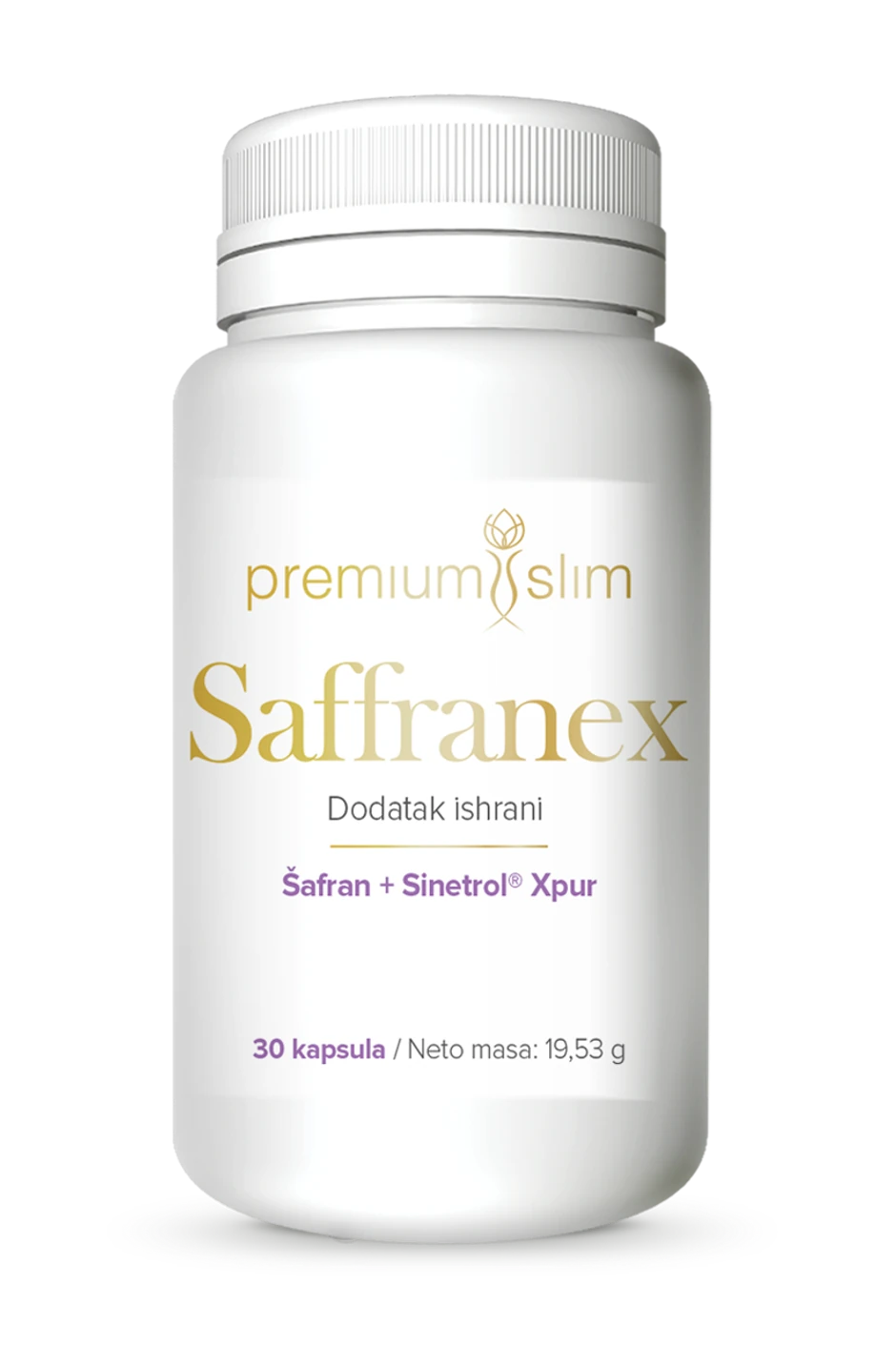 Aktivne supstance ekskluzivnog cveta šafrana regulišu apetit i varenje, imaju antidepresivno dejstvo, smanjuju stres i popravljaju raspoloženje. Ovo je prvi dijetetski suplement na našem tržištu koji u svom sastavu ima šafran.