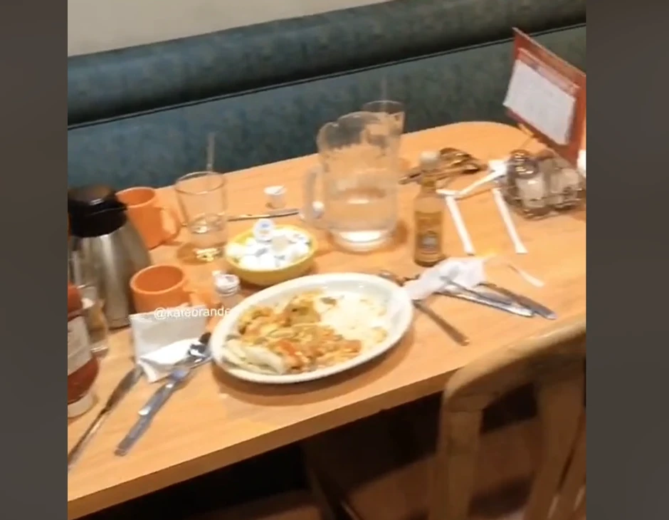 Zatim je pokazala sto za kojim je bila generacija Z. Za njihovim stolom nije bilo nereda, već su mladi za sobom sve pokupili i stavili prljave tanjire i čaše na gomilu na kraj stola kako bi konobarima olakšali pospremanje.