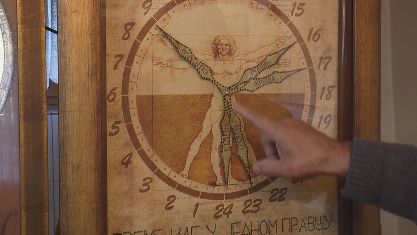 - U njega sam ugradio feder koji nakon nestanka struje omogućuje da sat radi još naredna tri dana, dok sekundara na mojim satovima ne postoji. Kod Srba u ovim krajevima poznato da je jedinica mere za vreme - onomad - Slobo bio u Hagu, ili onomad je za vreme rata. Ovde se vreme gleda od Vidovdana do Savindana i obrnuto - istakao je Slobodan.