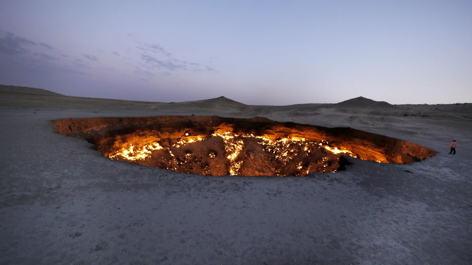 Dobro došli u Darvazu u Turkmenistanu ili, kako ga meštani nazivaju, "Vrata Pakla". Jezivi krater čiji prečnik iznosi oko 70 metara, dok je dubina oko 20 metara. Ako se do Darvaze dovezete kolima tokom dana, prizor neće biti previše impresivan, sve dok ne padne noć. Gas koji izlazi iz rupe neprestano pali vatru a temperatura je sve jača i jača. Zatim, kako sunce bude zalazilo ispod horizonta, krater će pokazati svu lepotu i veličinu.