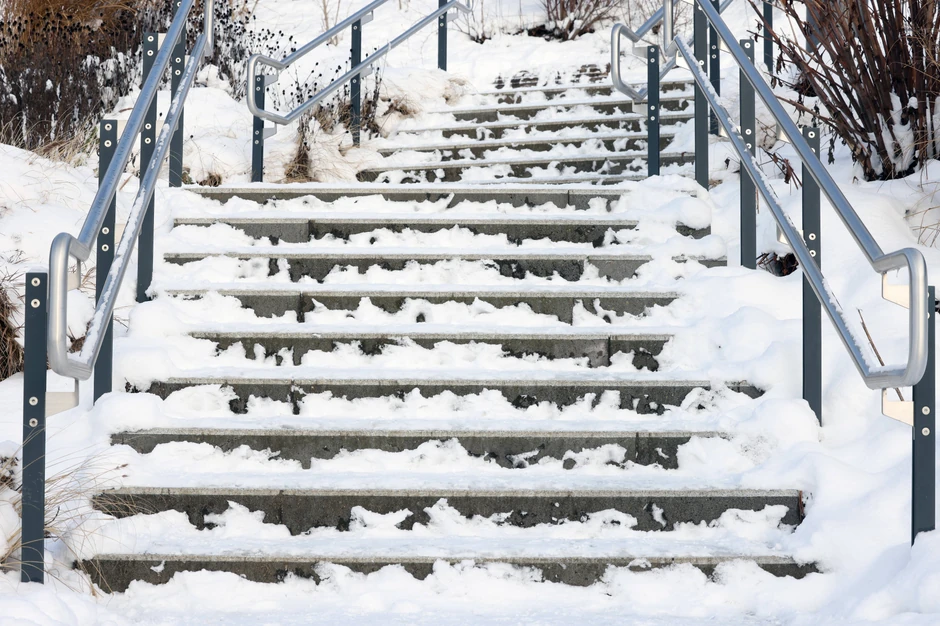Led na stepenicama tokom zimskih dana predstavlja ozbiljan bezbednosni problem i čest je uzrok klizanja i povreda.
